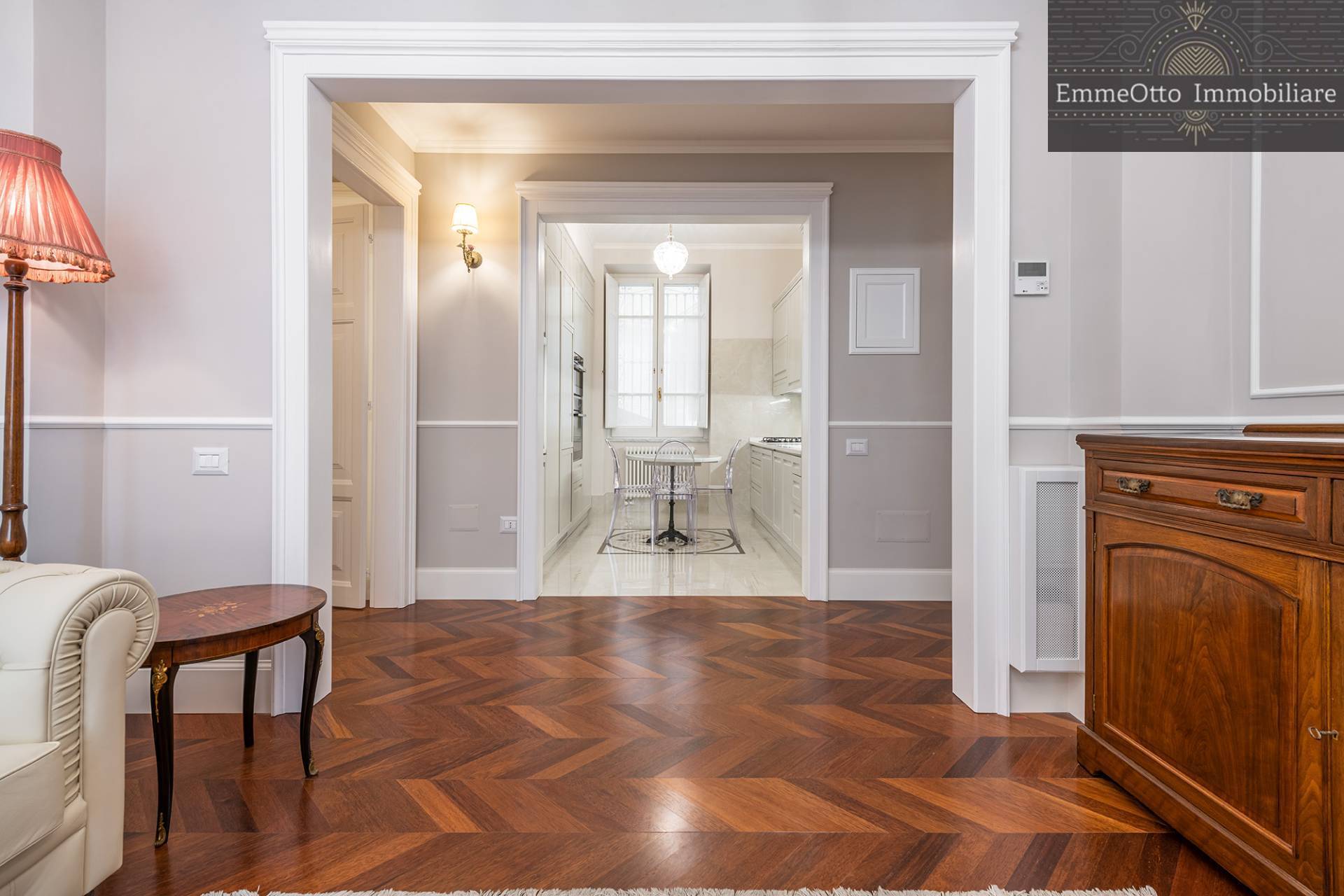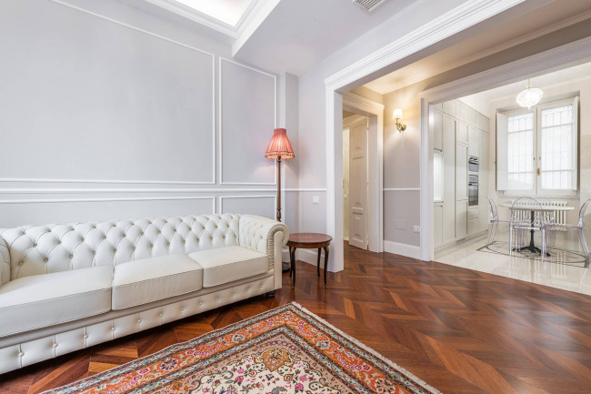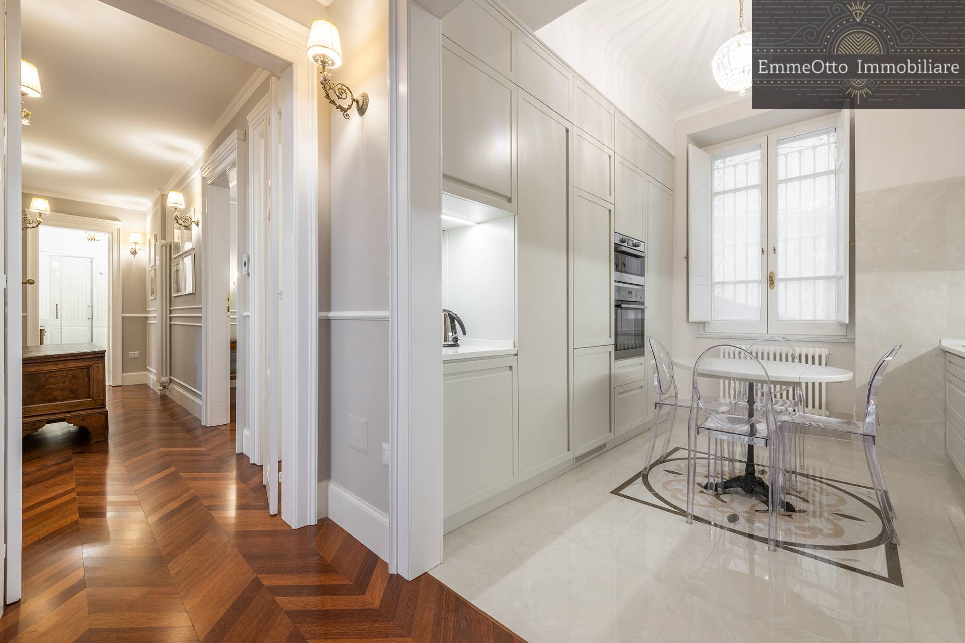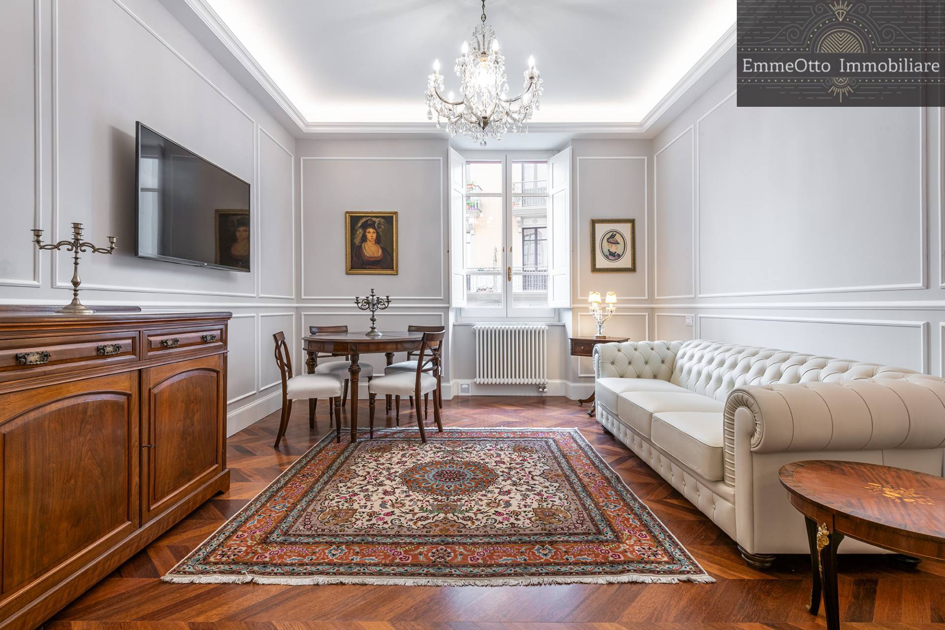 L'immobile, finemente ristrutturato e arredato con elementi d'epoca restaurati, è composto da spazioso soggiorno, cucina abitabile, due camere matrimoniali, camera singola, due bagni con doccia e posto auto coperto.