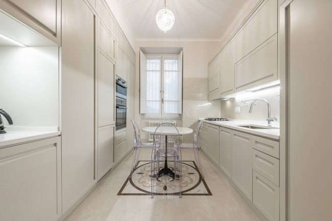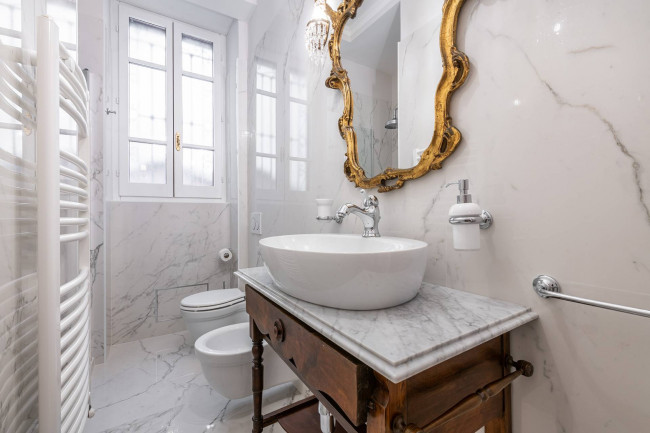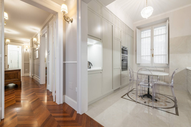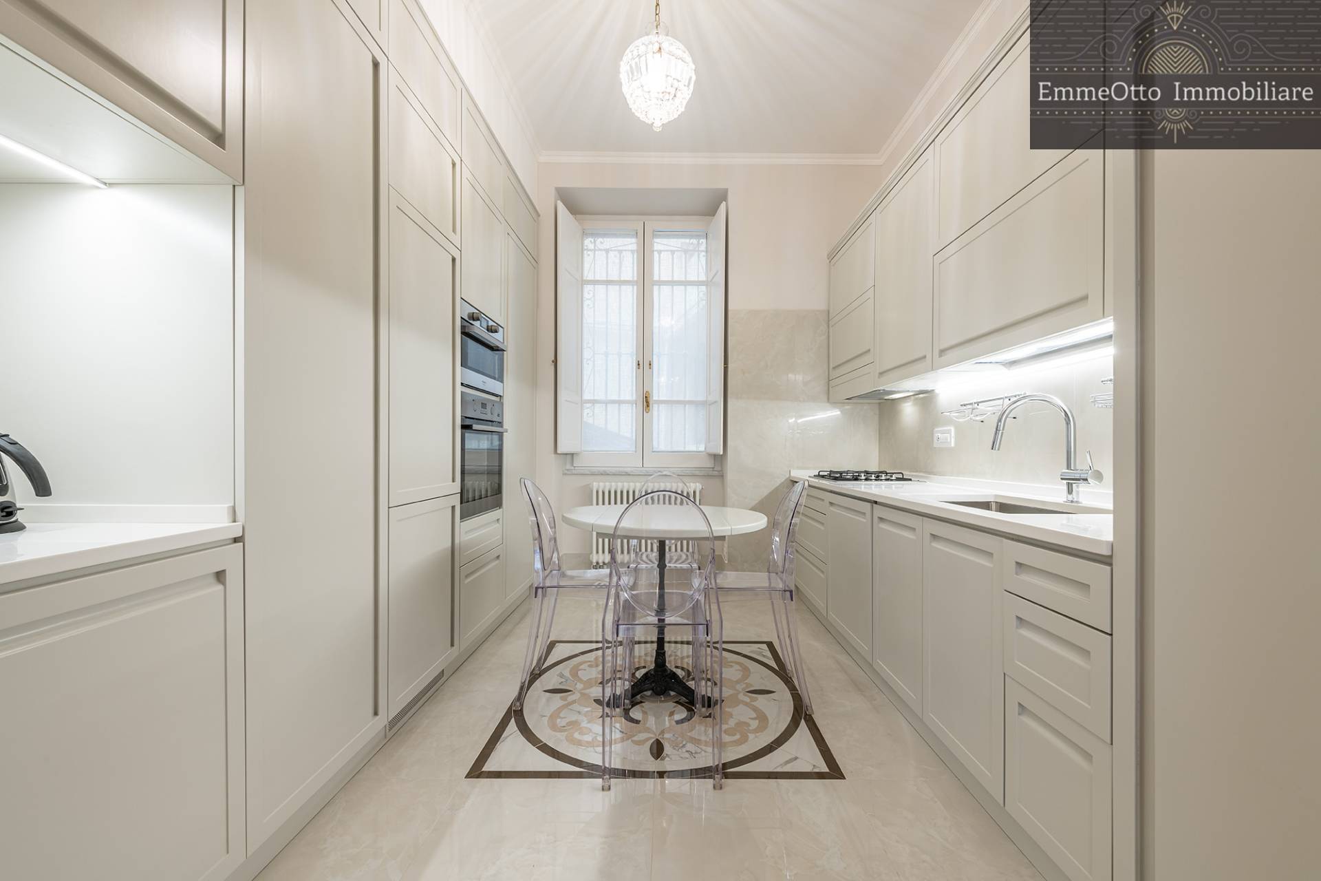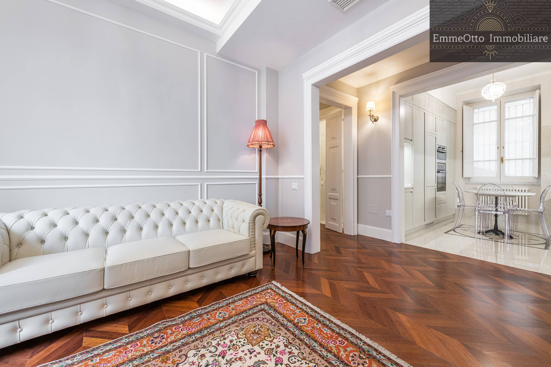 L'immobile, finemente ristrutturato e arredato con elementi d'epoca restaurati, è composto da spazioso soggiorno, cucina abitabile, due camere matrimoniali, camera singola, due bagni con doccia e posto auto coperto.